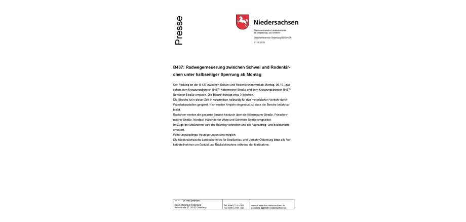 B437: Radwegerneuerung zwischen Schwei und Rodenkirchen
